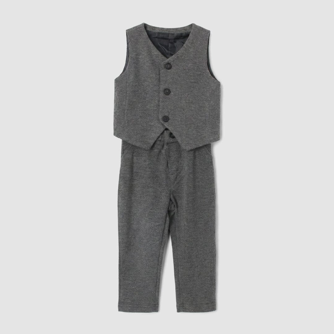 Elevate your boy's wardrobe with this sophisticated two-piece ensemble in a refined grey palette. Crafted with premium quality materials, this set combines comfort with contemporary style, perfect for both casual outings and semi-formal occasions. The coordinated pieces work seamlessly together, offering versatility and ease of styling. Designed with attention to detail, this collection reflects modern fashion sensibilities while maintaining durability for everyday wear. An excellent choice for parents seeking quality clothing that grows with their child's style preferences.