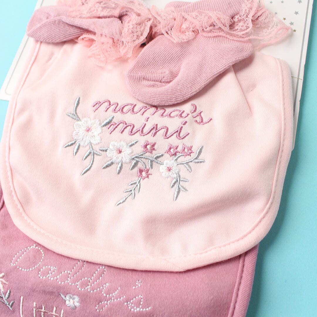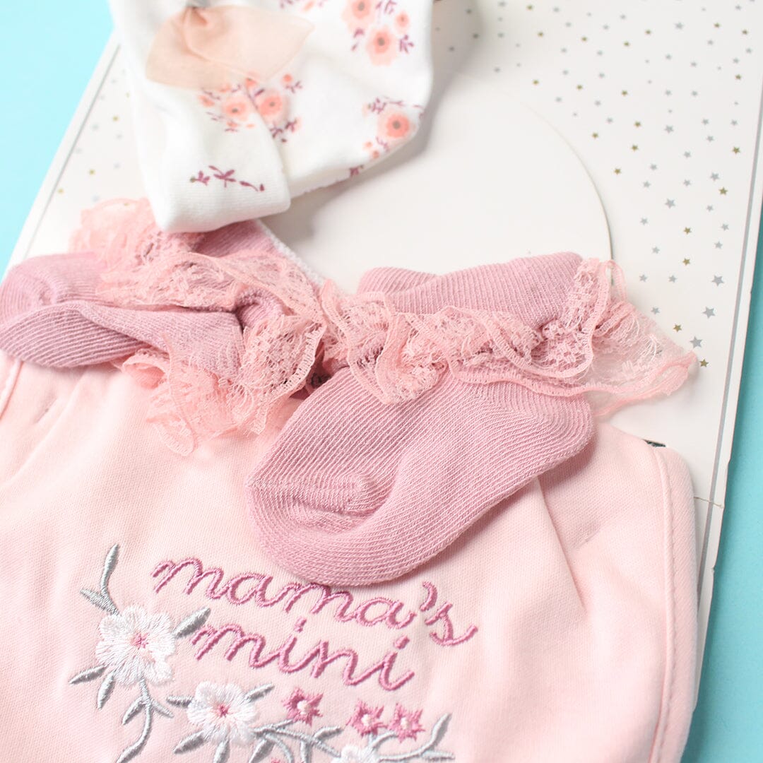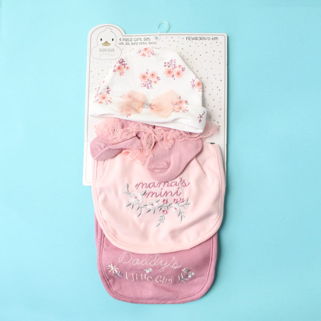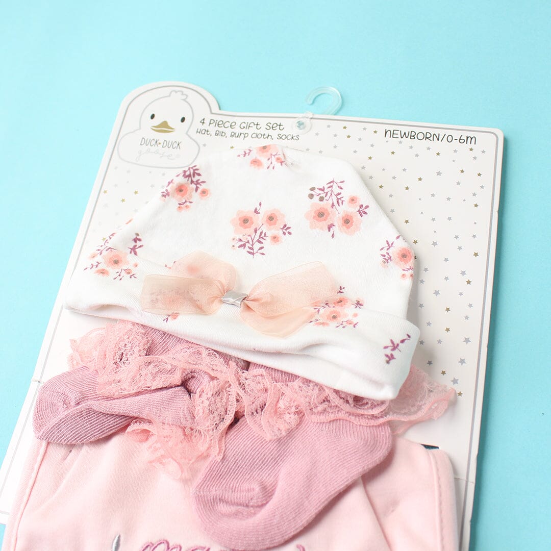 This expertly assembled four-piece gift set delivers essential baby care items in one coordinated package. Each component—hat, burp cloth, bib, and socks—is engineered for reliability and comfort during those demanding early months. The thoughtful combination addresses practical parenting needs while maintaining a cohesive, polished appearance. An ideal choice for parents who value both functionality and refined aesthetics in their child's everyday essentials.