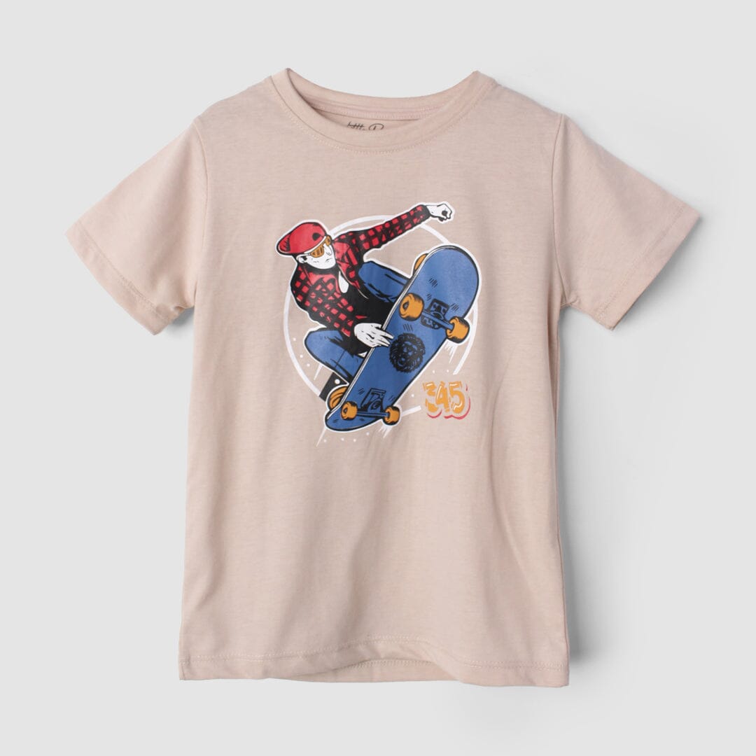 Crafted for comfort and style, this beige-themed boys' T-shirt from Little People offers premium quality fabric that ensures durability and softness. Its neutral beige tone pairs effortlessly with various outfits, making it a versatile addition to any young wardrobe. Designed with attention to detail, this T-shirt combines practicality with a modern look, perfect for everyday wear.