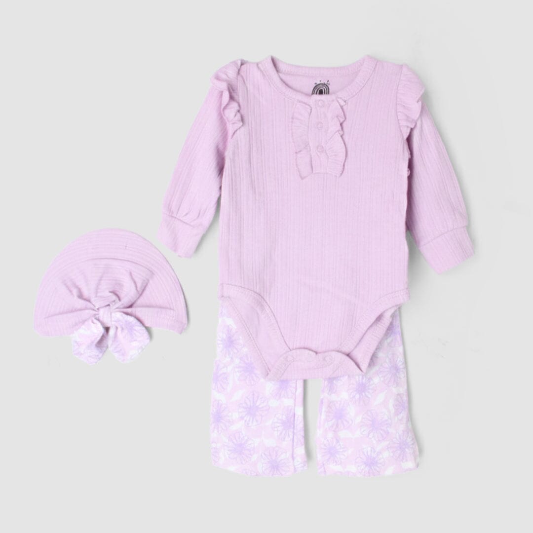 Little People Premium Quality Inspire Purple 3Pc Girls Romper Set