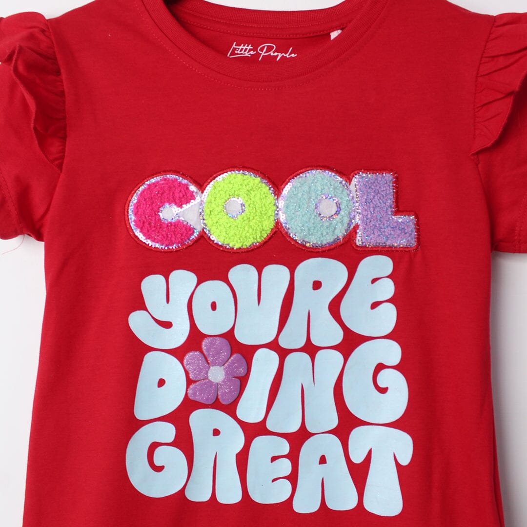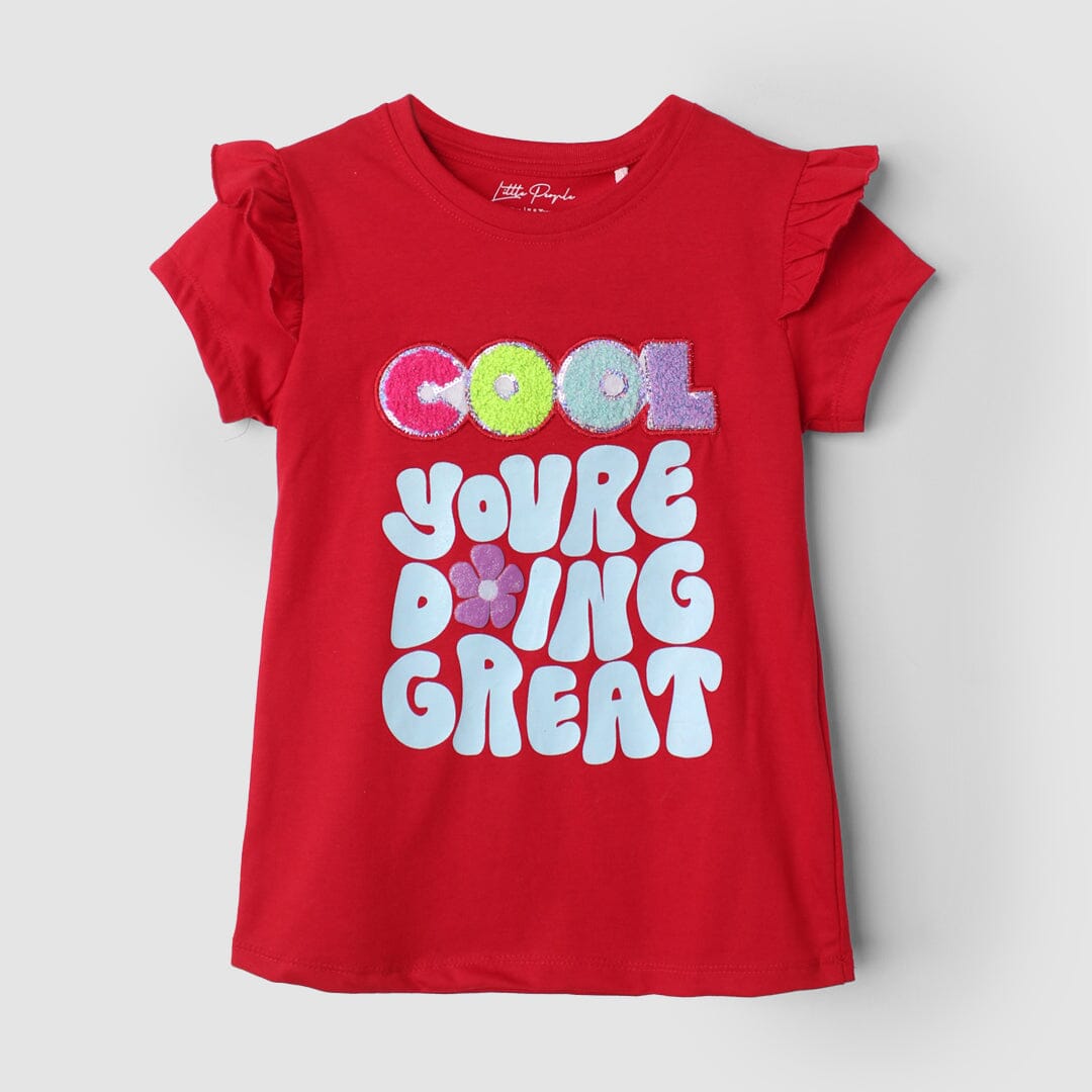 Little People Premium Quality Dashing Red Themed Girls T-Shirt