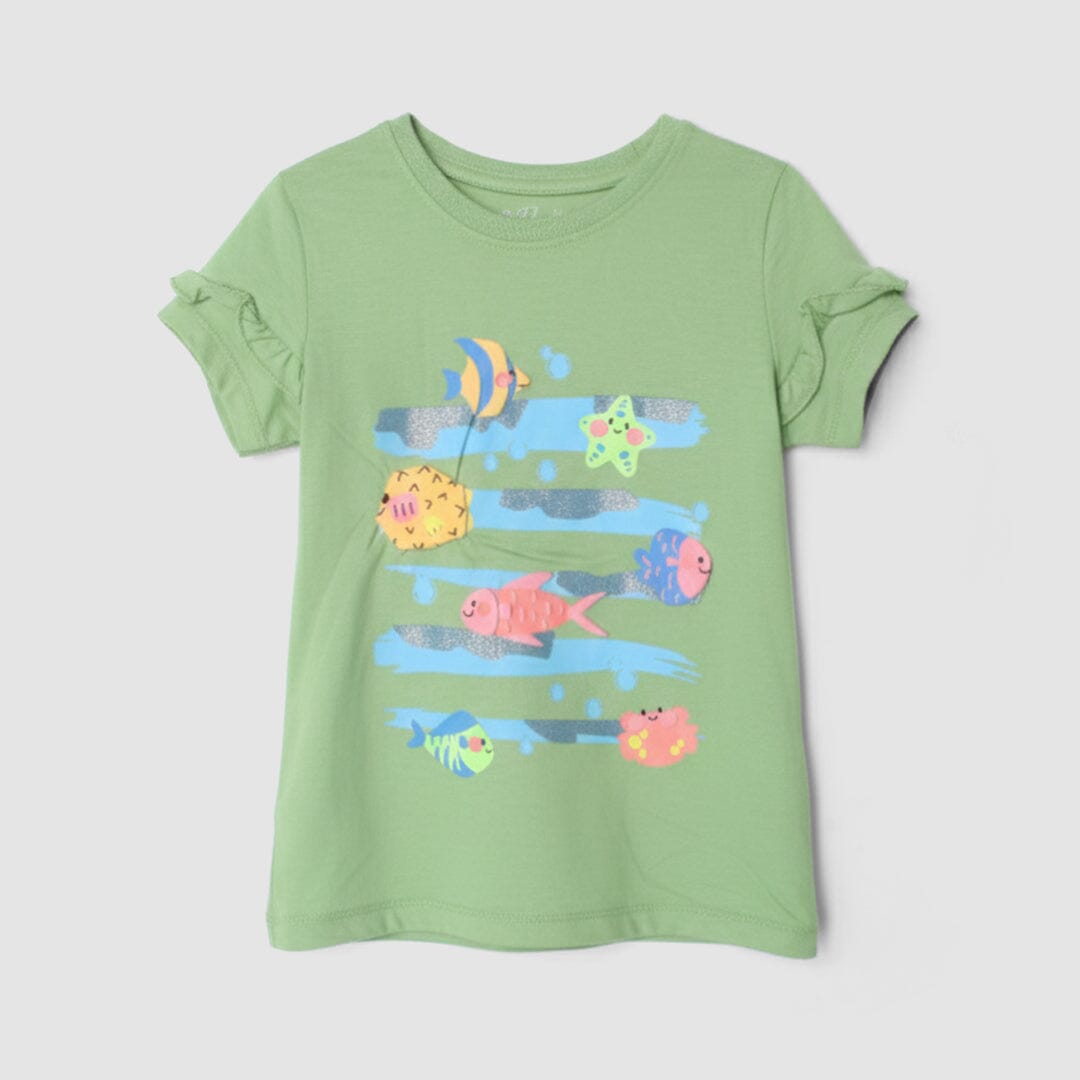 Little People Premium Quality Olive Green Girls T-Shirt