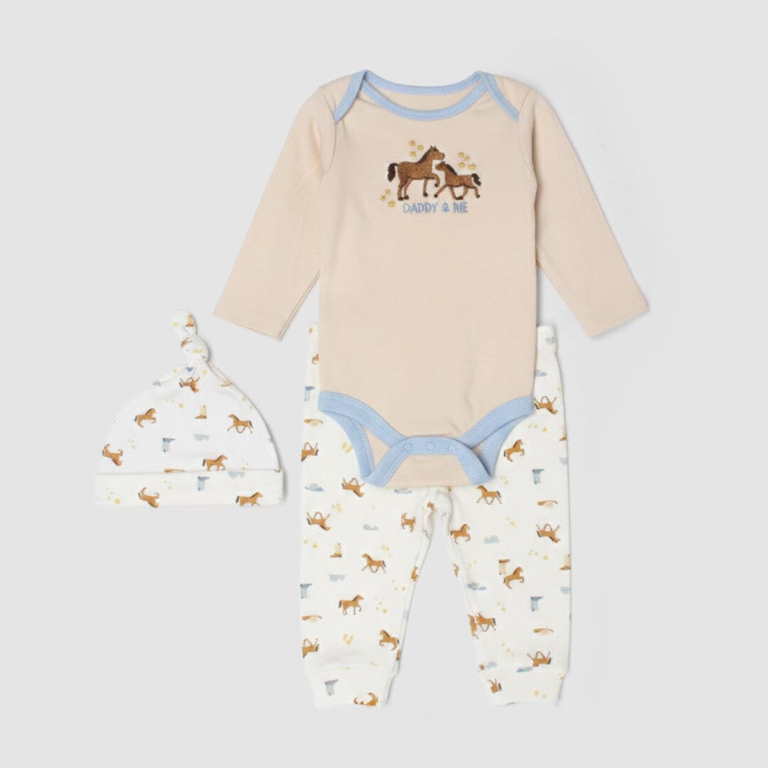 Little People Premium Quality Fawn Beige 3Pc Boys Romper Set