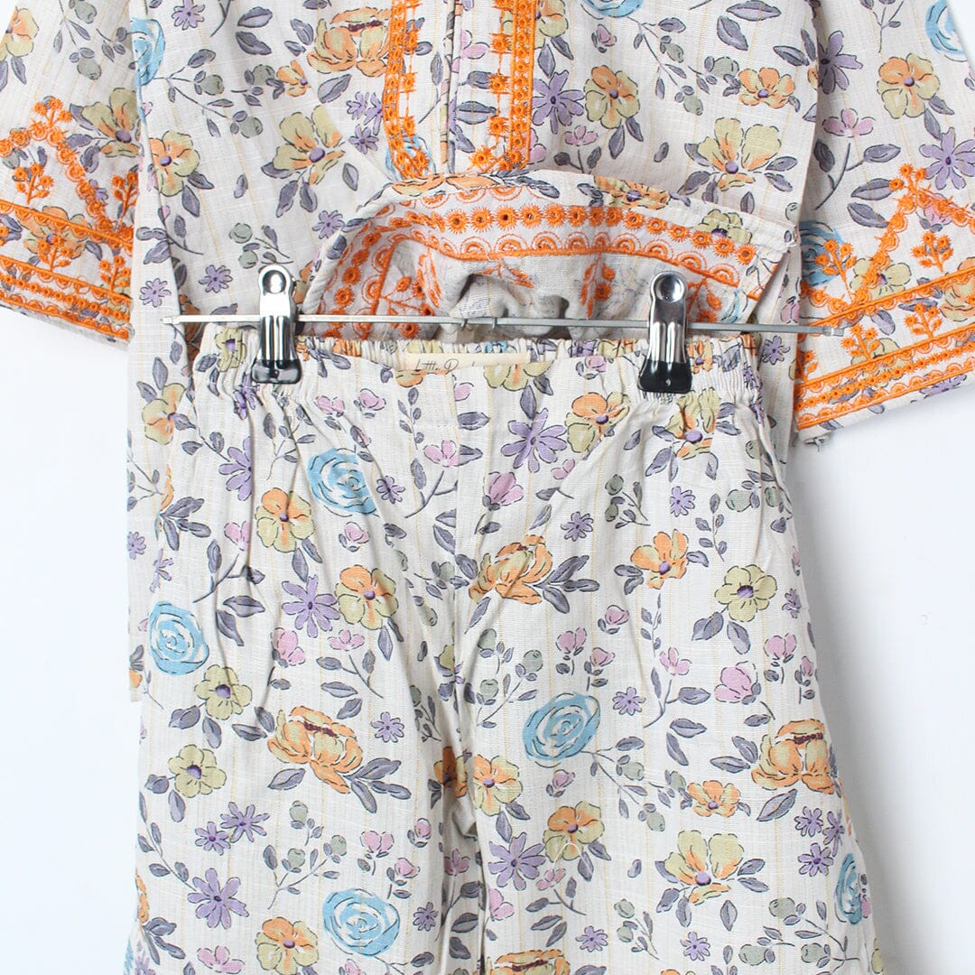 Little People Premium Quality Admire Off White Princess Kurti & Trouser