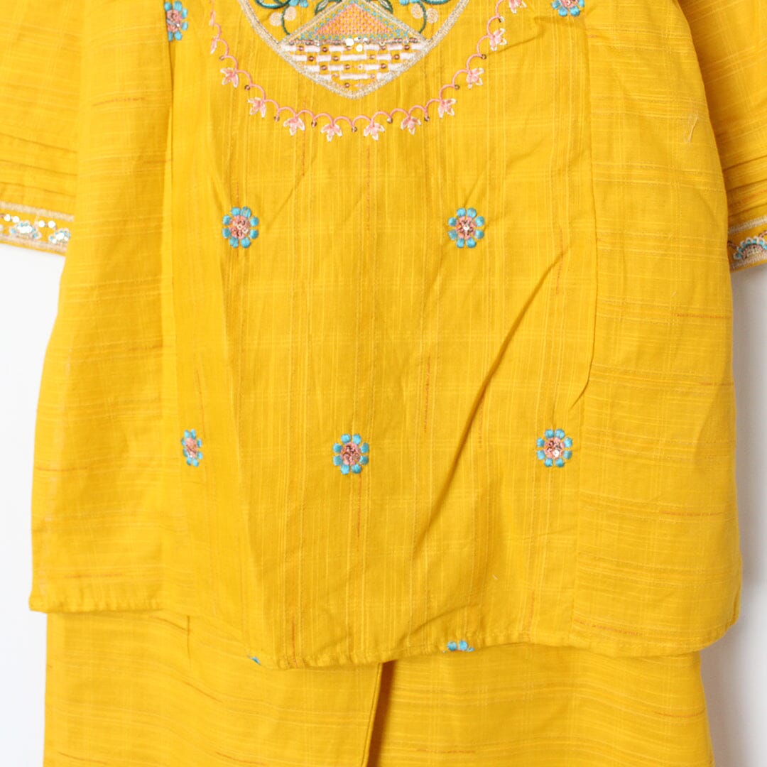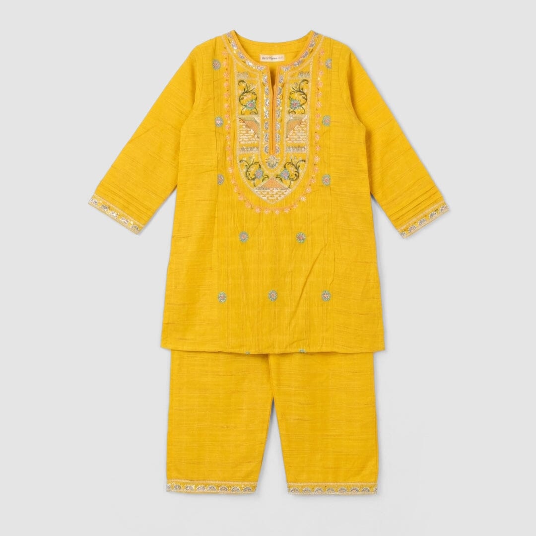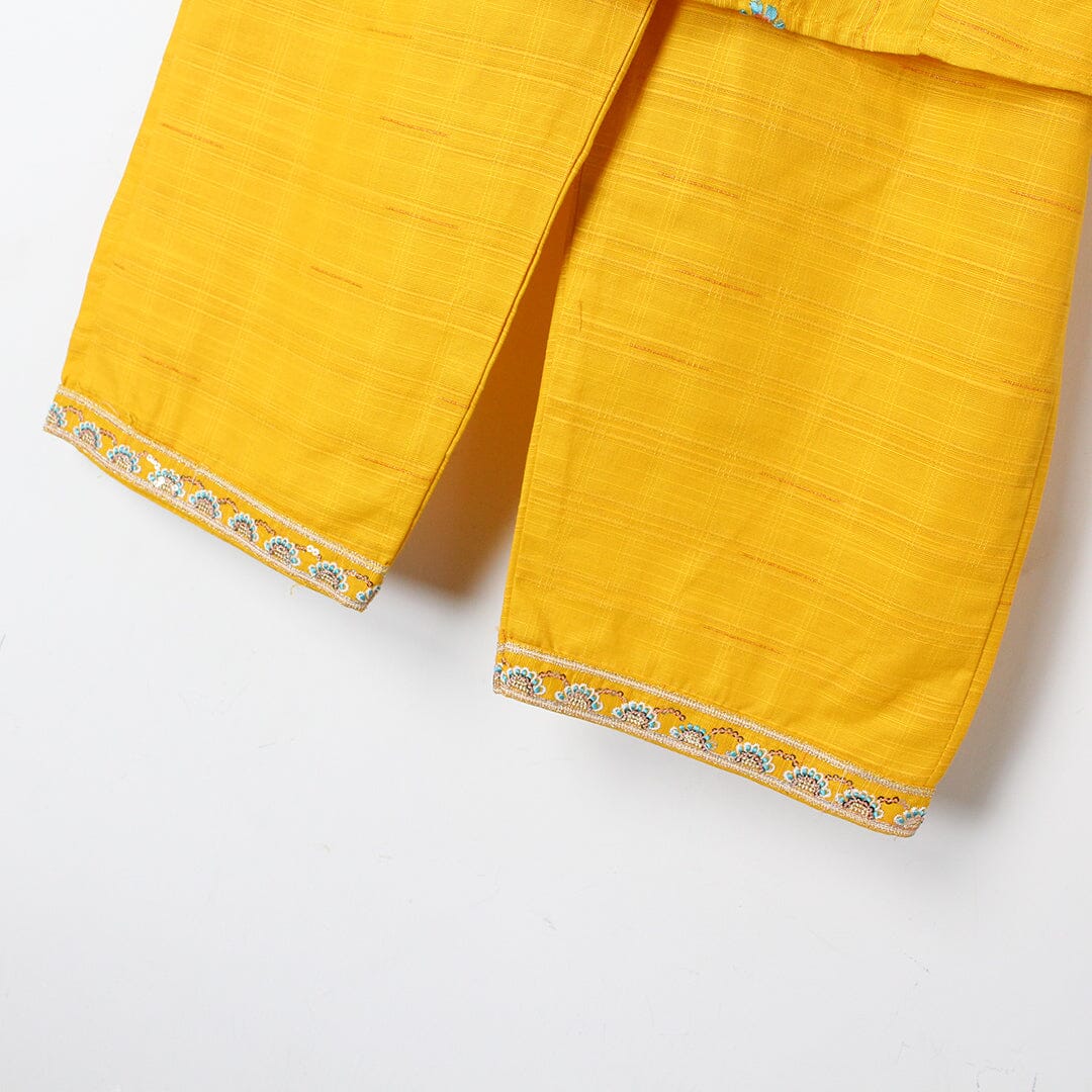 Little People Premium Quality Fancy Yellow Princess Kurti & Trouser