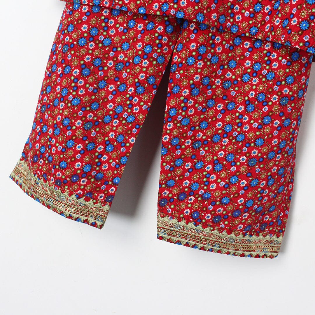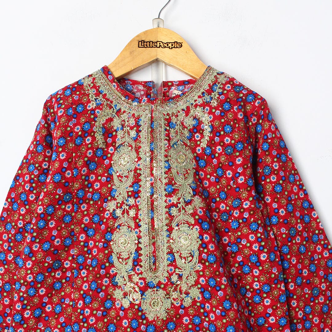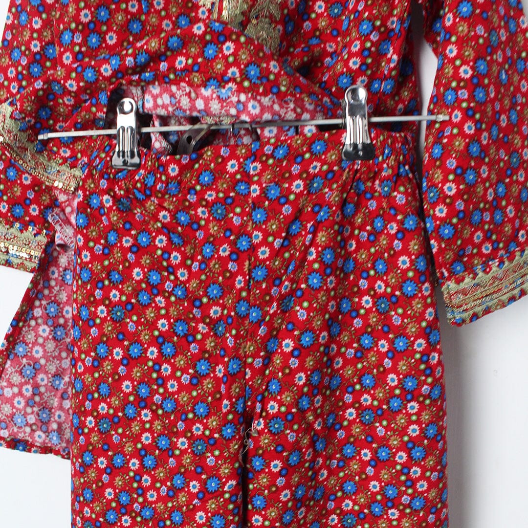 Little People Premium Quality Ruby Red Princess Kurti & Trouser