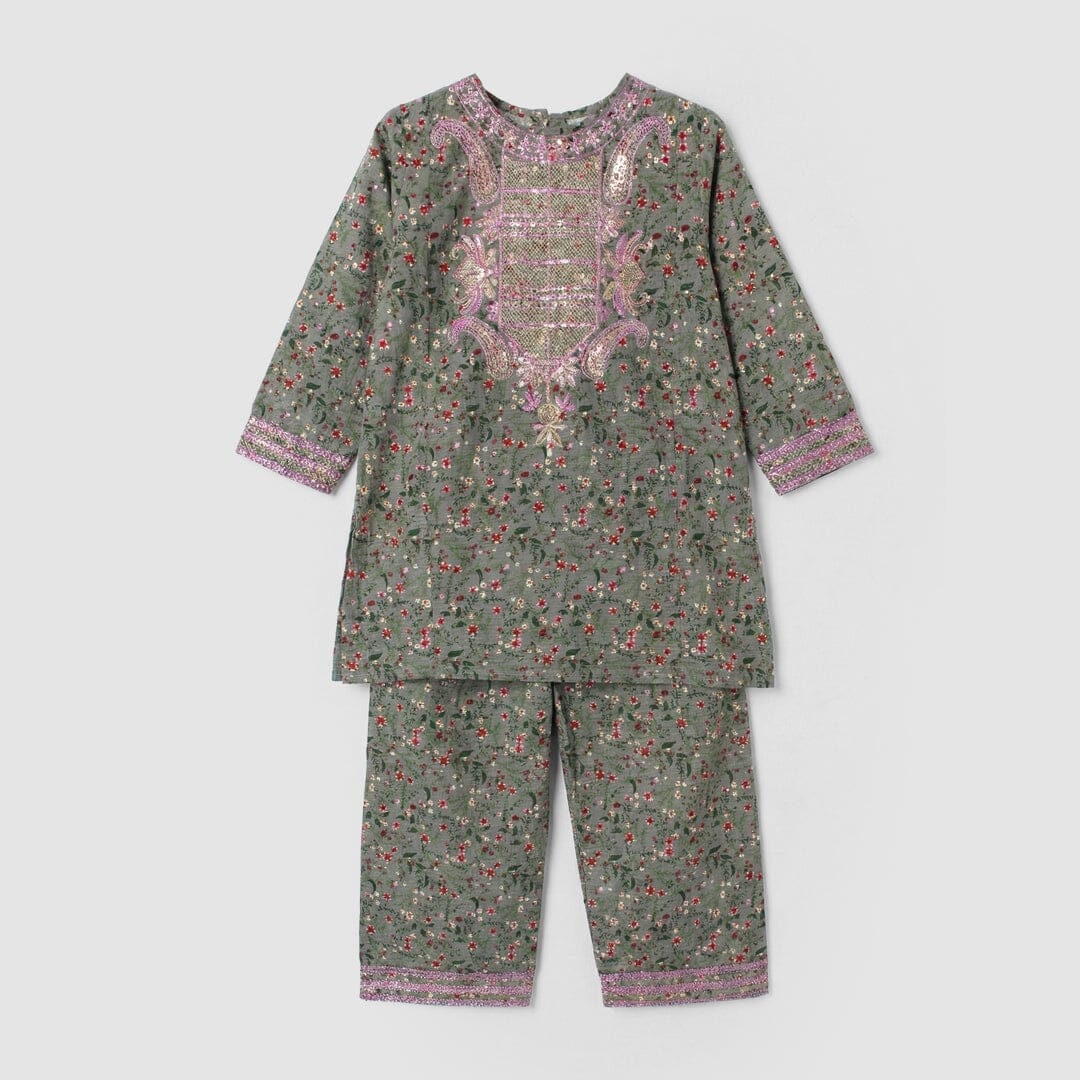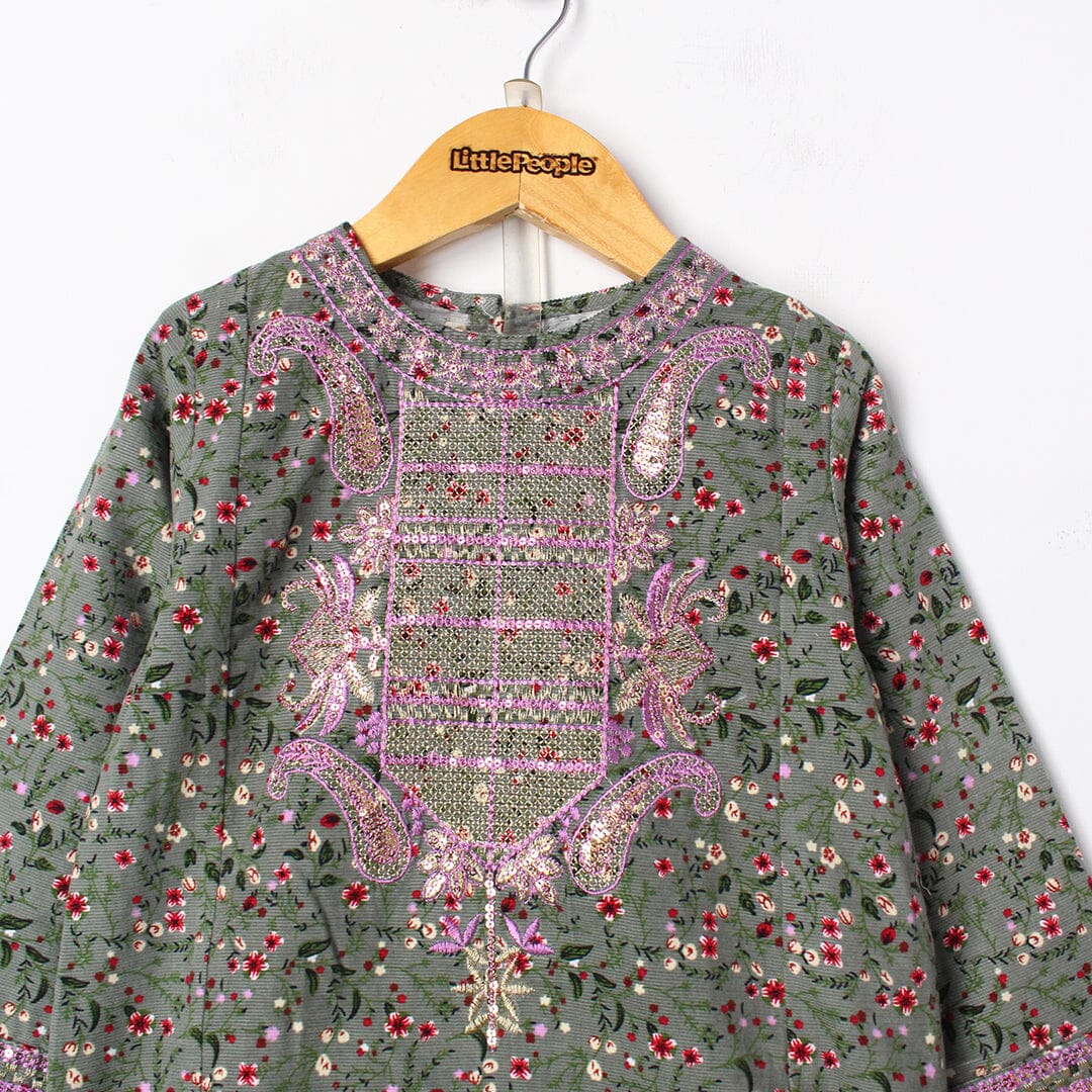 Little People Premium Quality Sober Green Princess Kurti & Trouser