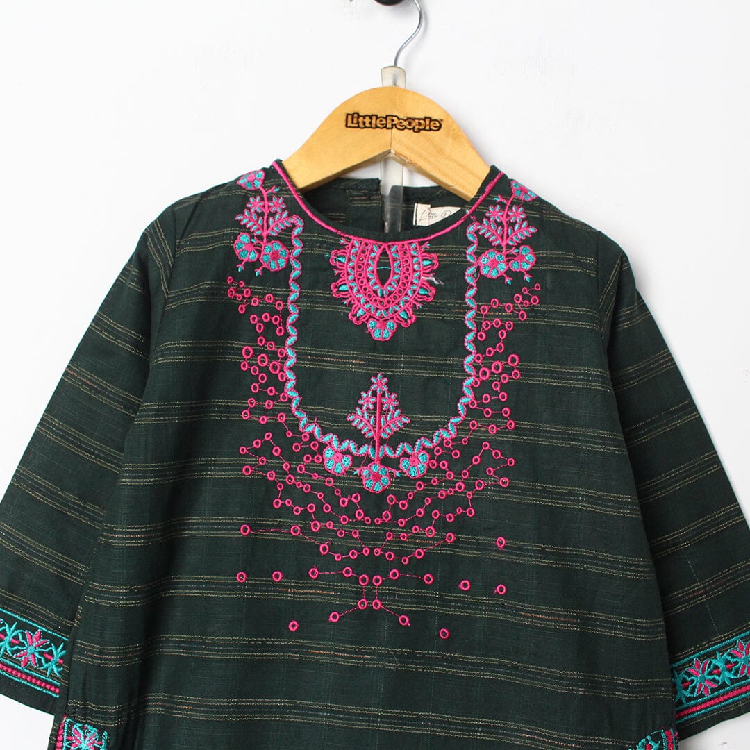 Little People Premium Quality Sober Green Princess Kurti & Trouser