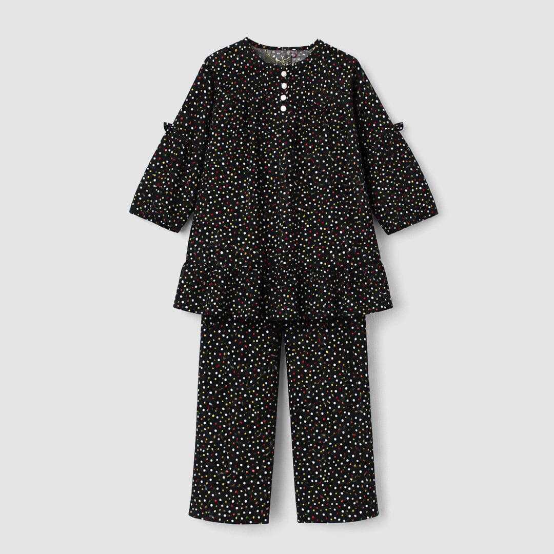 Little People Premium Quality Coal Black Princess Kurti & Trouser