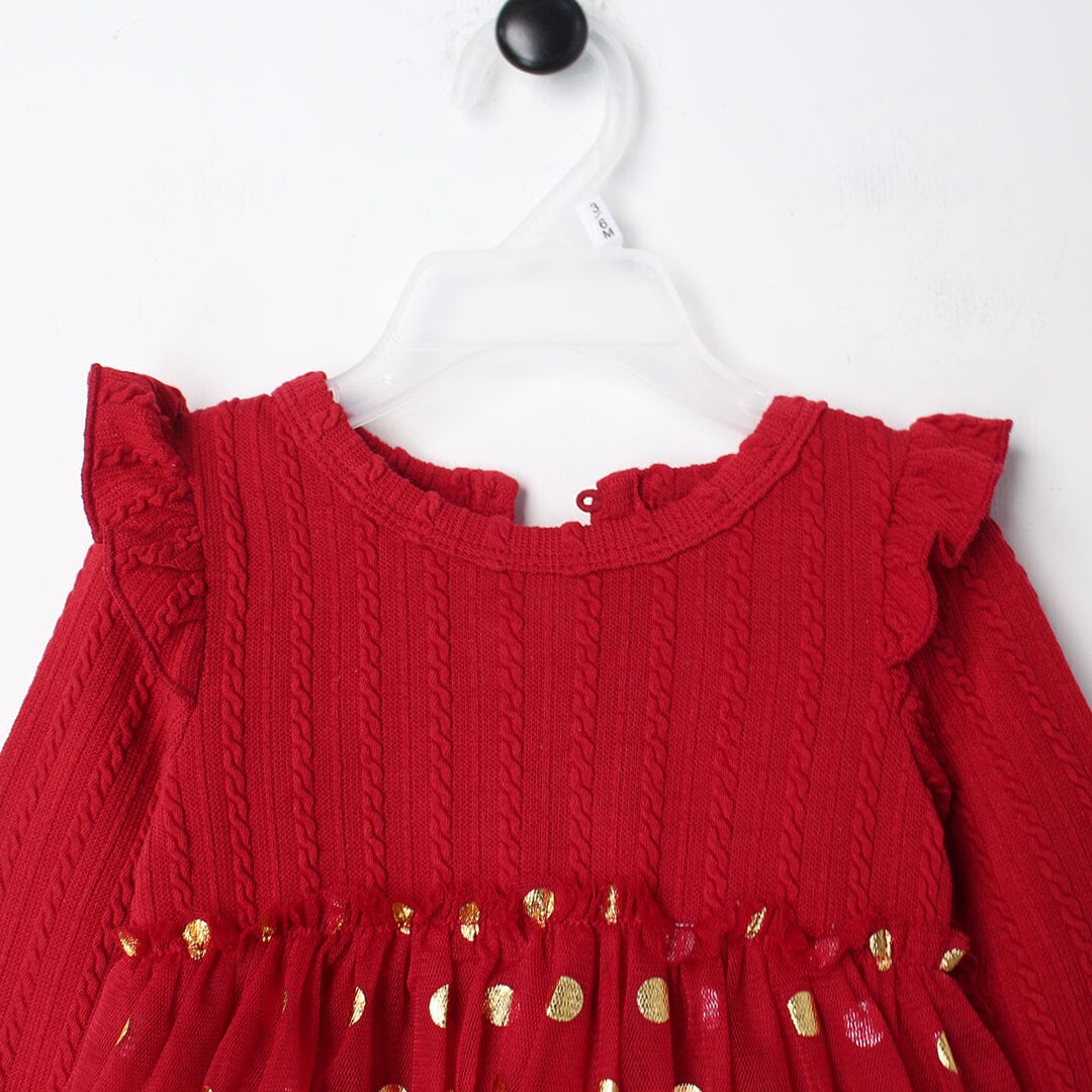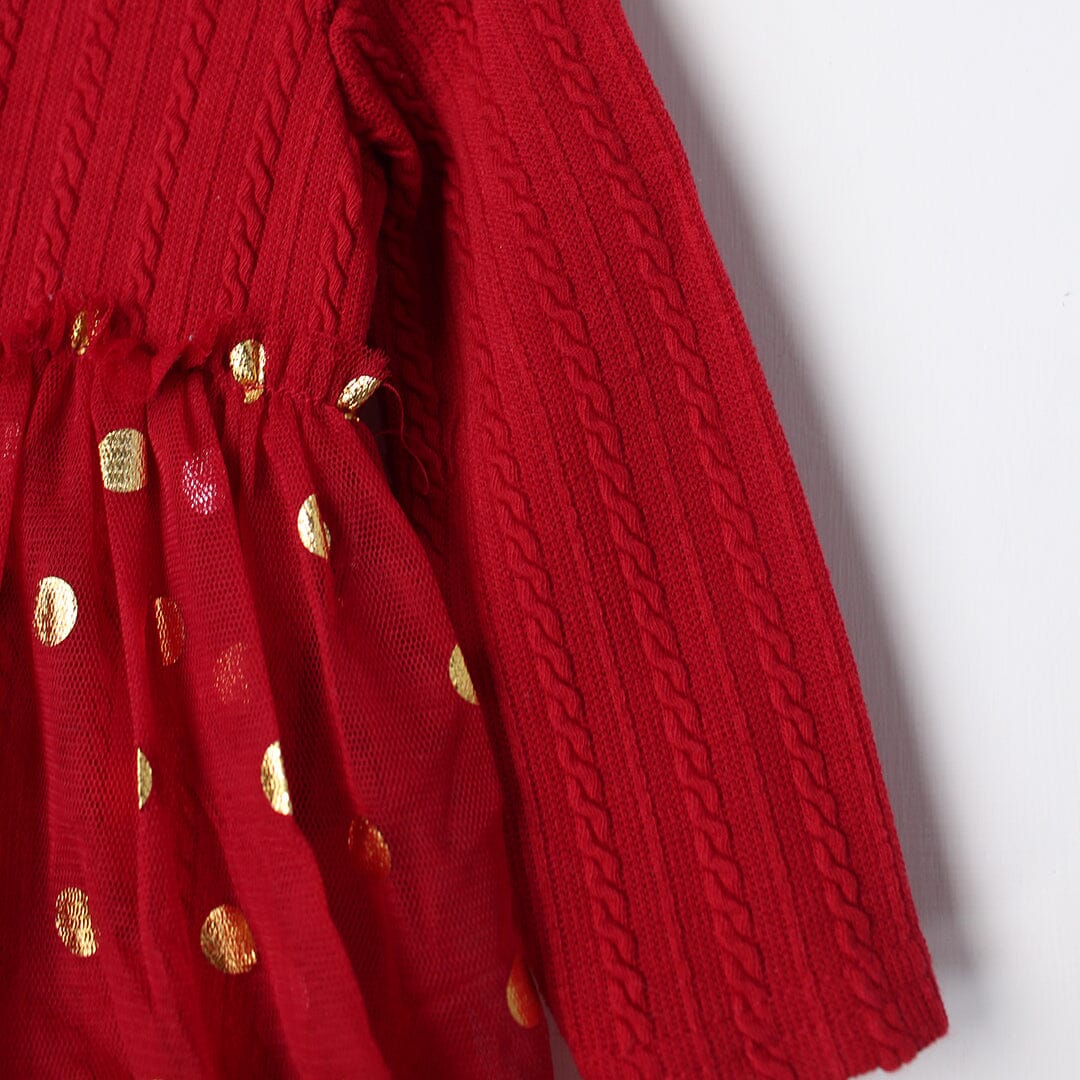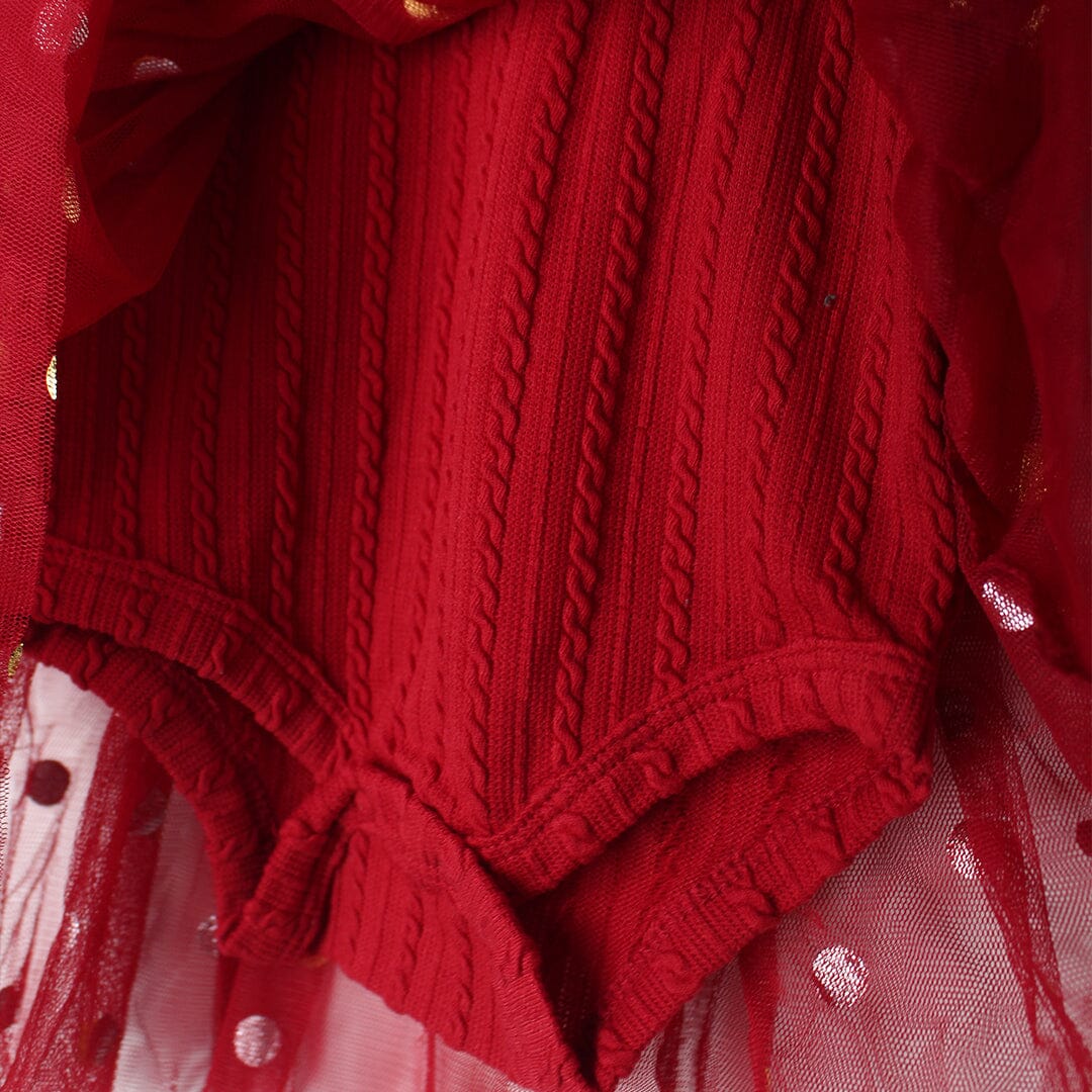 Little People Premium Quality Cherry Red Winter Girls Romper