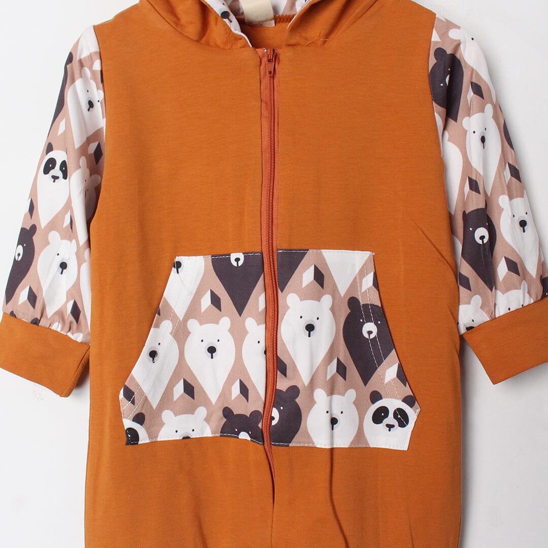 Little People Premium Quality Cozy Brown Themed Winter Romper For Boys