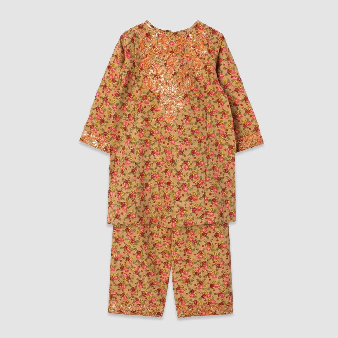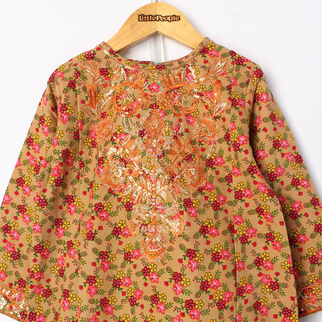Little People Premium Quality Skin Brown Princess Kurti & Trouser