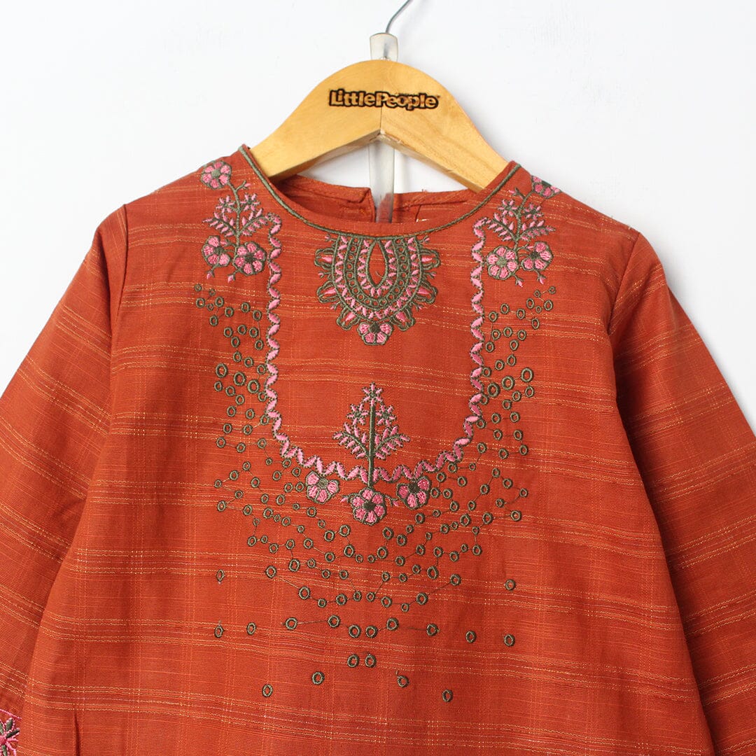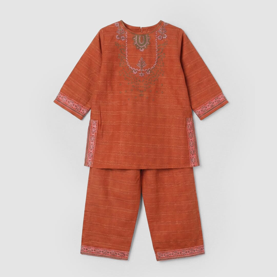 Elevate your child's wardrobe with this premium Spicy Orange Princess Kurti & Trouser set. Crafted with meticulous attention to detail, this ensemble features vibrant coloring that captures attention while maintaining comfort for all-day wear. The kurti showcases elegant princess-style tailoring with refined finishes, paired with well-fitted trousers for a polished look. Ideal for celebrations, family gatherings, or special occasions, this coordinated set ensures your little one looks sophisticated and confident. Premium quality construction guarantees durability through repeated wear and washing, making it a worthwhile investment in your child's traditional wardrobe.