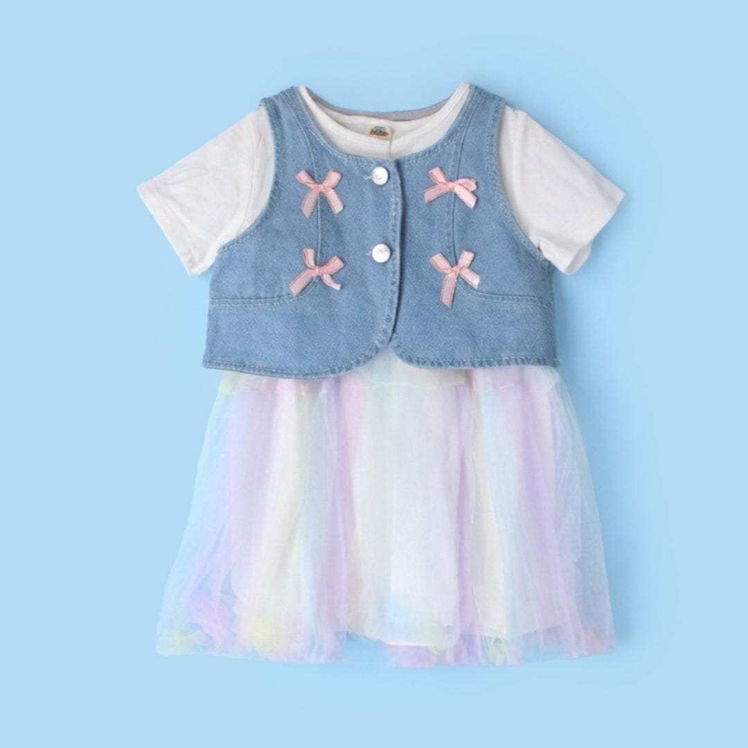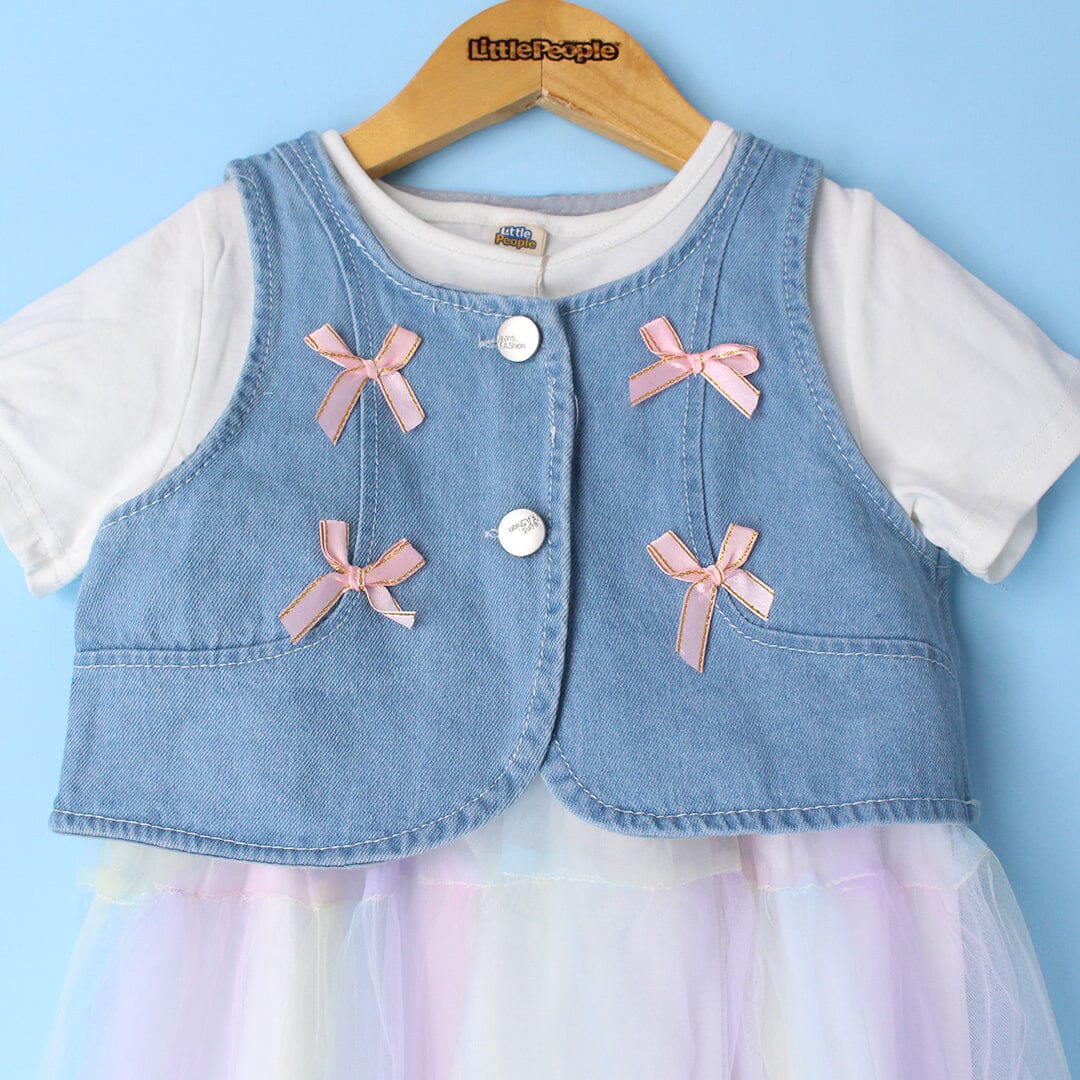 Little People Premium Quality Denim Vest & Tulle Fairy Frock Set