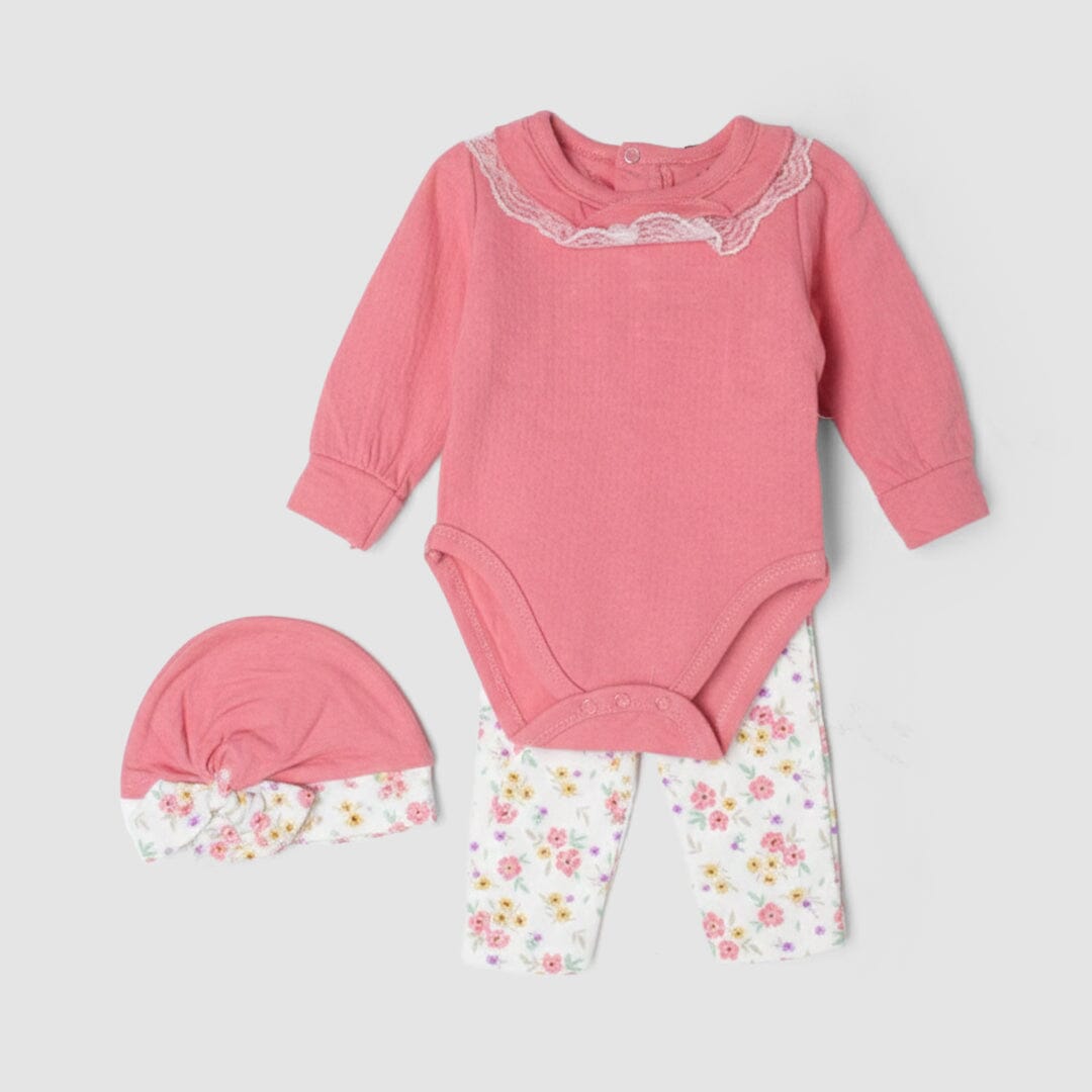 Little People Premium Quality Desire Pink 3Pc Girls Romper Set