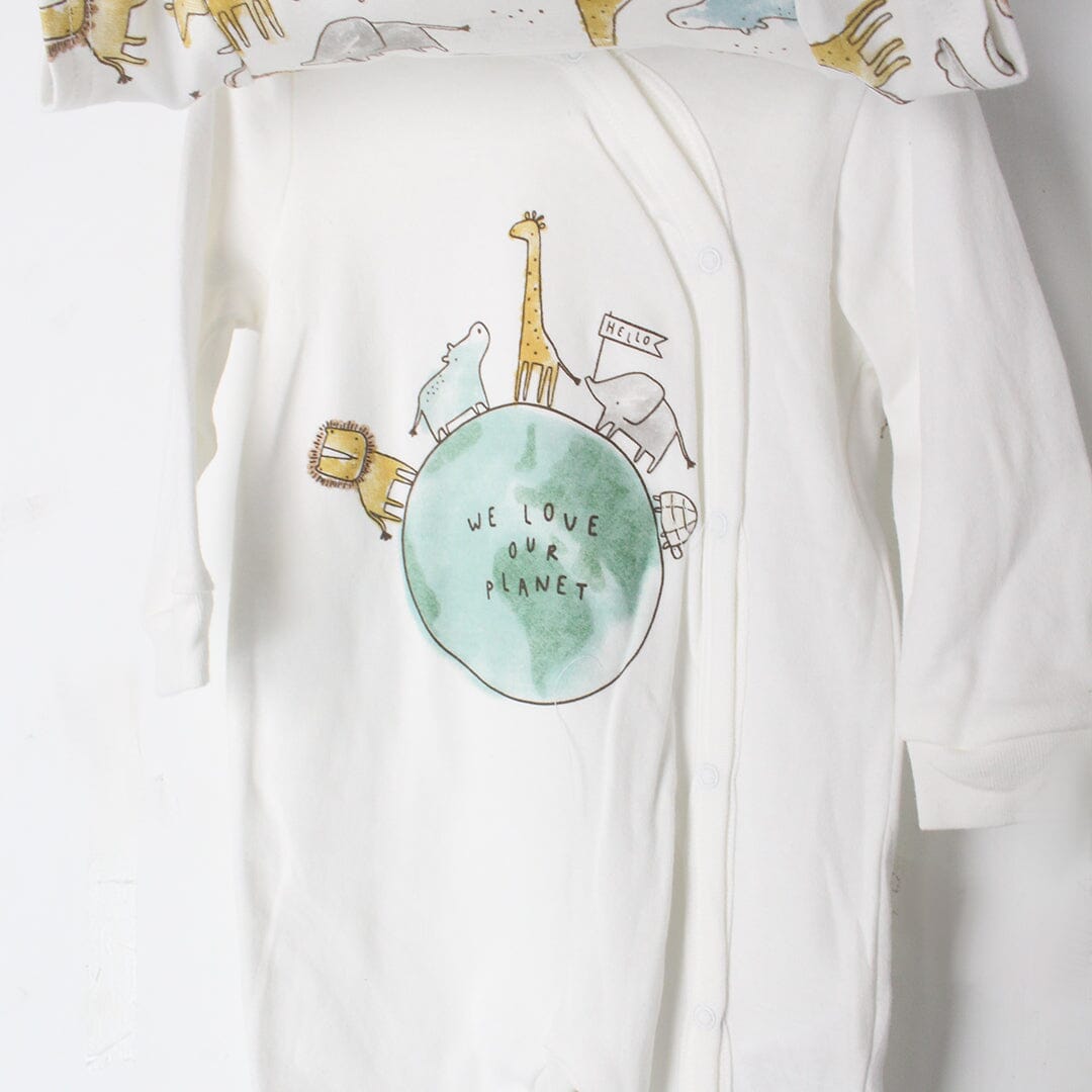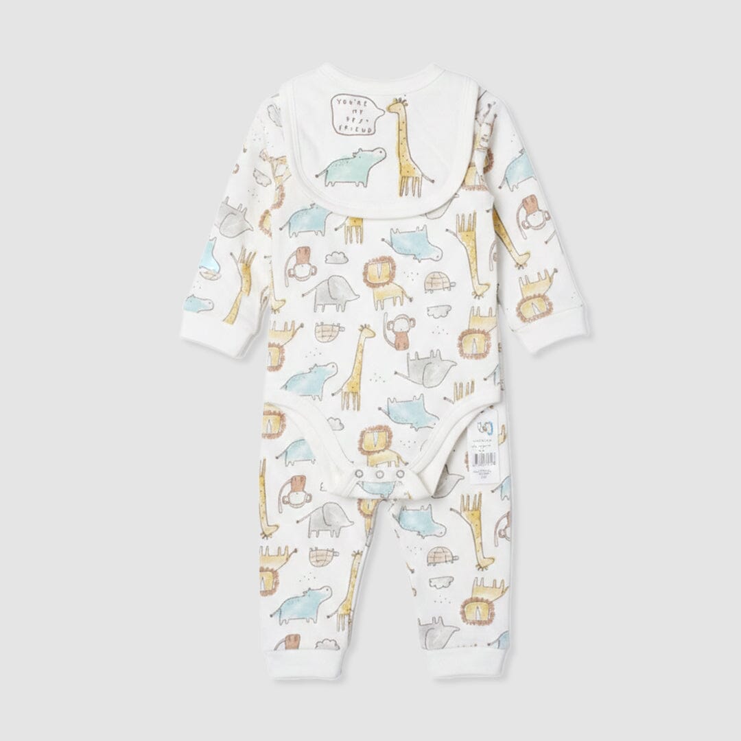 Little People Premium Quality Stylish Off White 3Pc Boys Romper Set