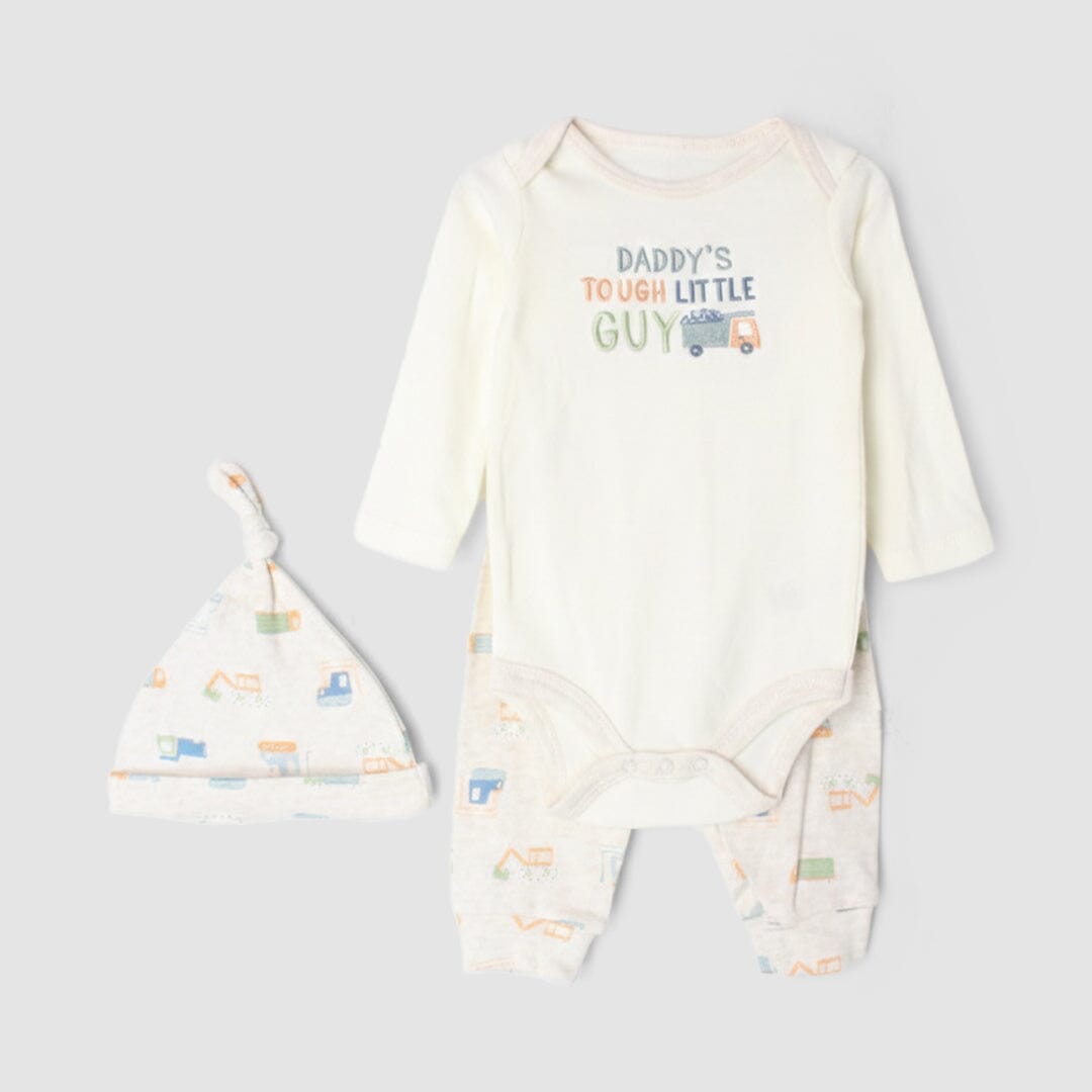 Little People Premium Quality Stylish Off White 3Pc Boys Romper Set