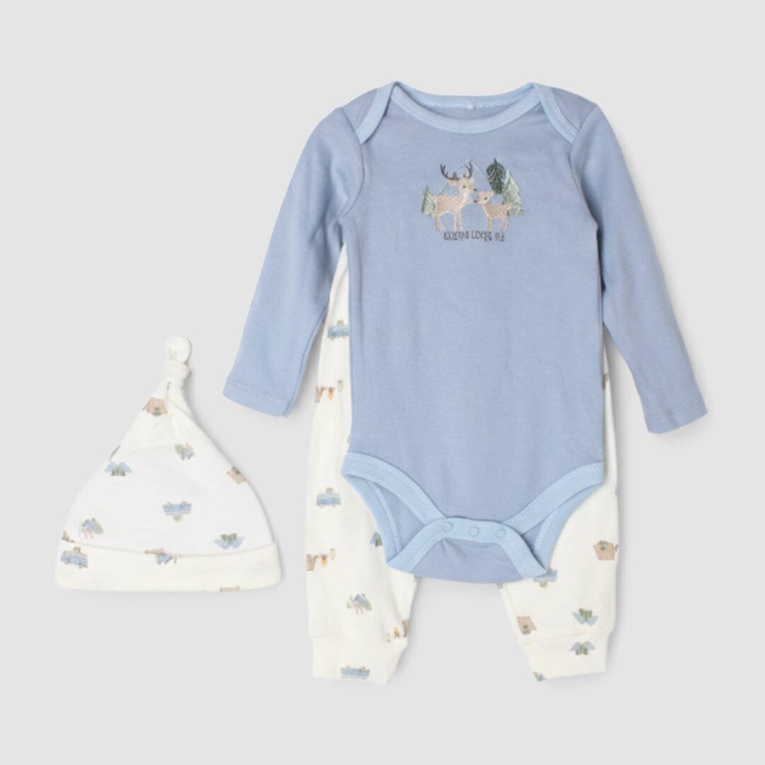 Little People Premium Quality Urge Blue 3Pc Boys Romper Set