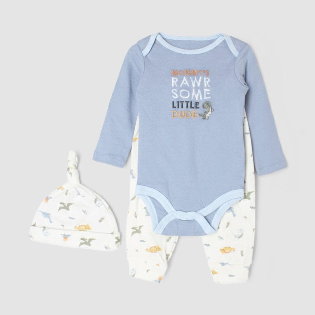 Little People Premium Quality Urge Blue 3Pc Boys Romper Set